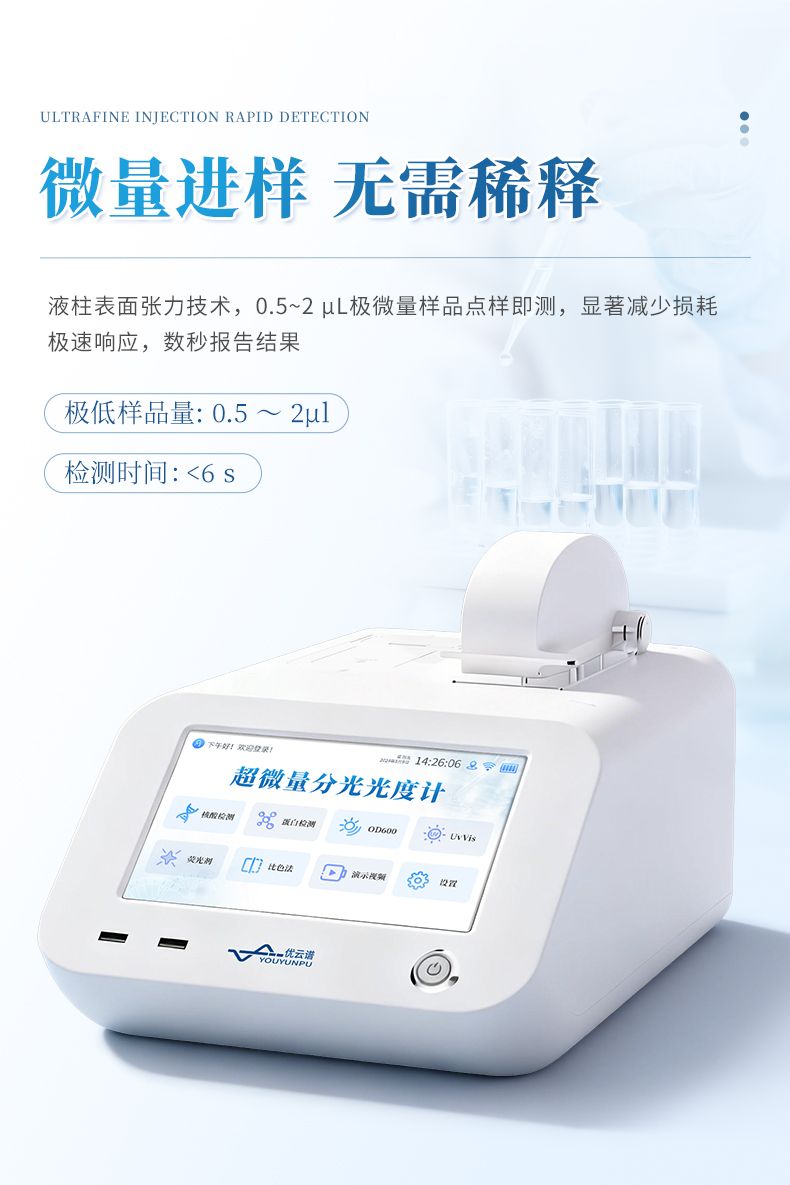 生命科學與醫(yī)學研究:為高校、科研院所及醫(yī)院實驗室,提供核酸濃度測量、蛋白質(zhì)定量、微生物生長監(jiān)測的基礎檢測支持。