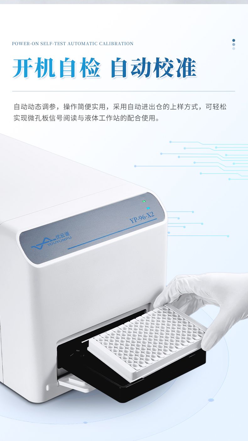 儀器具有開機自檢和自校準功能,自動動態(tài)范圍調(diào)整功能使測量參數(shù)調(diào)整變得簡單實用。儀器支持8*12 不透明酶標板,采用自動進出倉的上樣方式,可輕松實現(xiàn)微孔板信號閱讀與液體工作站的配合使用。儀器緊湊型、輕量級的設計滿足小空間配置要求,盡量為您節(jié)省寶貴的實驗空間。