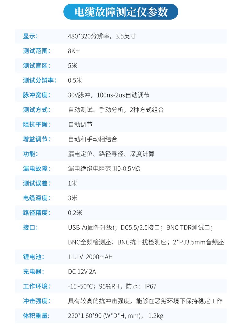 14、接口:USB-A(固件升級);DC5.5/2.5接口;BNC TDR測試口;BNC全頻檢測座;BNC抗干擾檢測座;2*PJ3.5mm音頻座