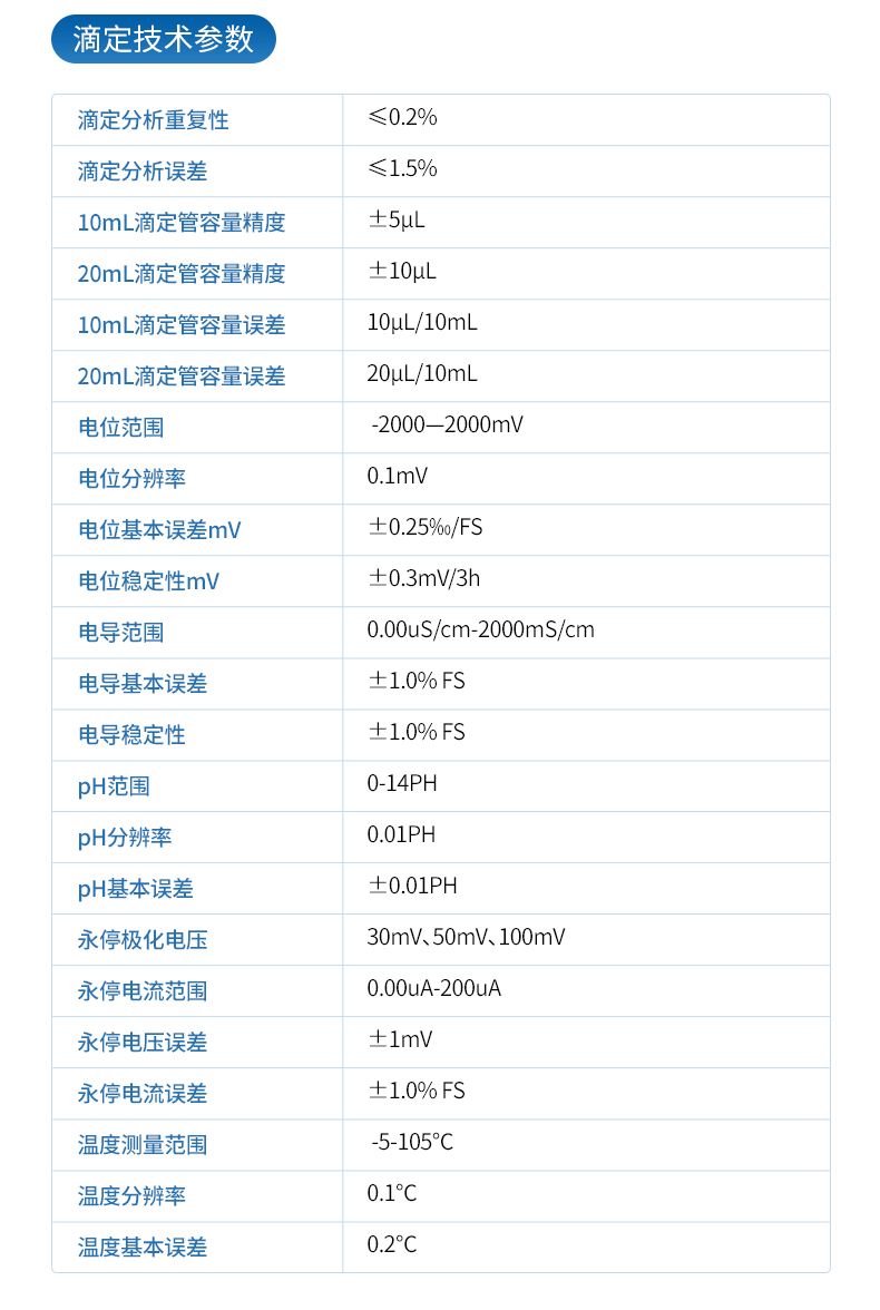 滴定分析重復(fù)性:≤0.2%