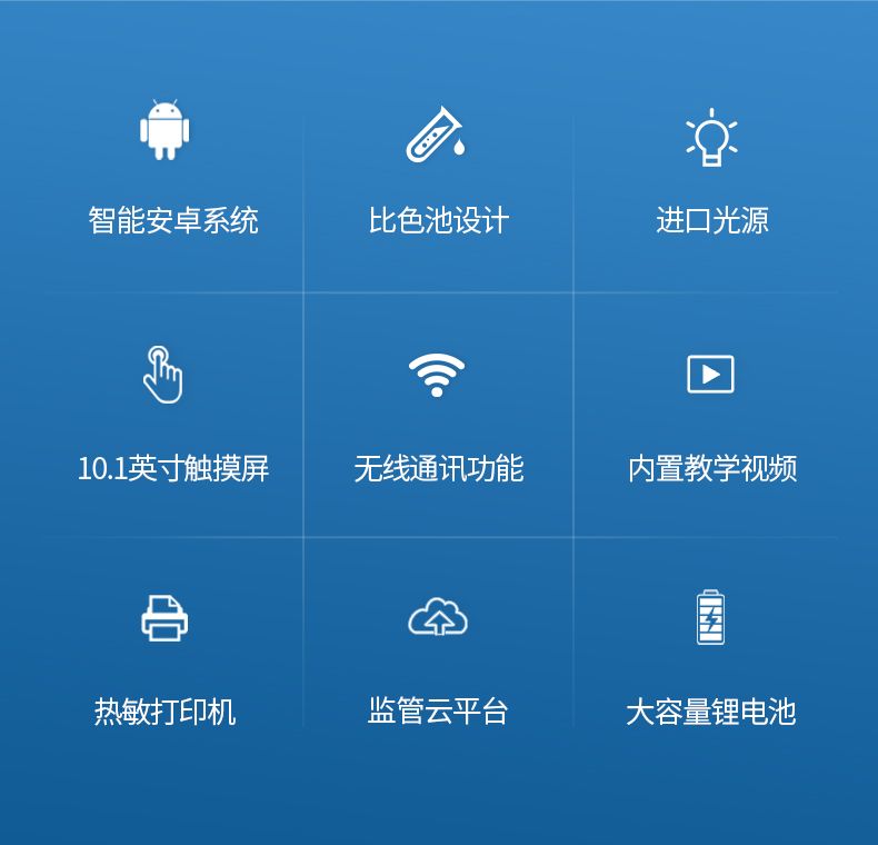 3、采用精密比色池設計,使用光源一致,可以解決由于光源誤差帶來的檢測結果誤差問題,檢測結果更加精準。