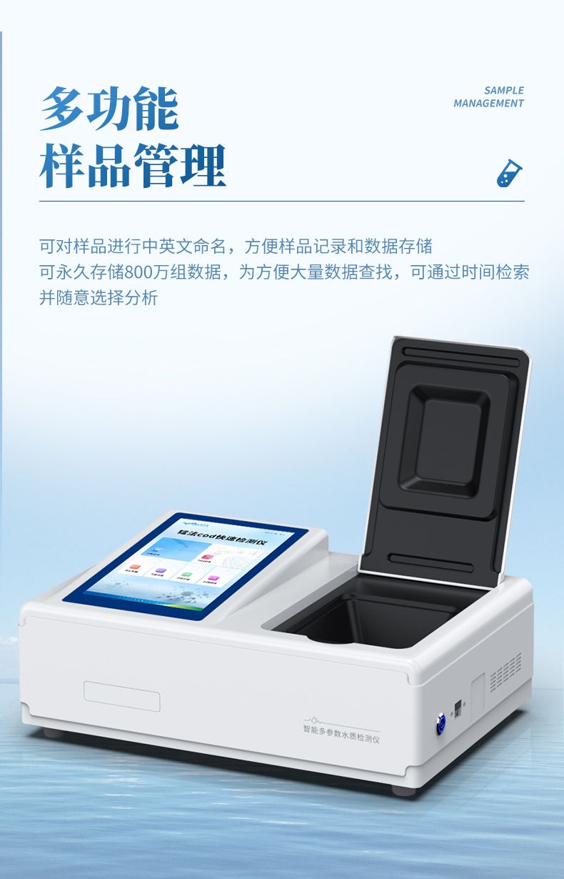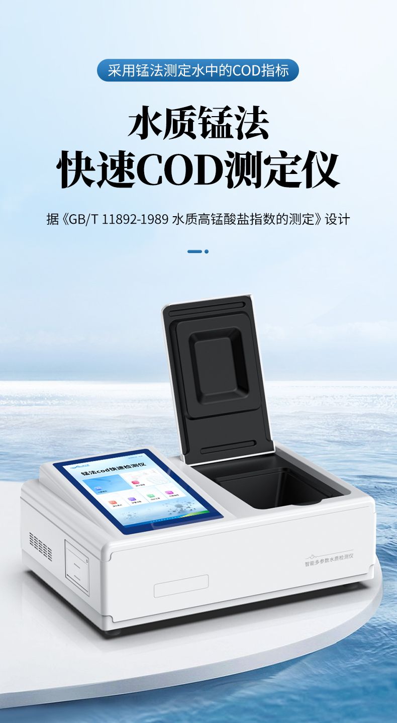 本儀器采用錳法測定水中的COD指標,又稱CODMn或高錳酸鹽指數,兼具智能數據分析功能,圖表、列表顯示數據,分析一目了然;高清晰度彩色液晶觸摸顯示屏,Android智能操作系統,中文顯示界面,中英文鍵盤,人性化操作,使用更簡單。