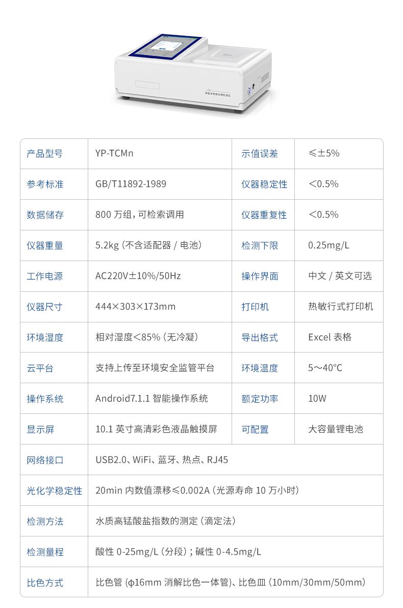 高錳酸鹽指數檢測儀(CODMn)是參考標準《GB/T 11892-1989 水質高錳酸鹽指數的測定》設計制造,適用于國內外眾多檢測標準。