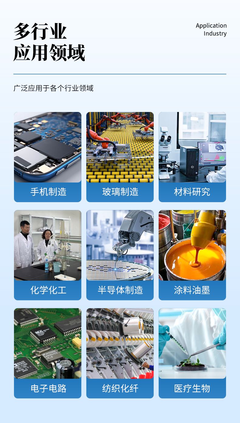 可廣泛應用于材料研究、工業涂層、手機制造、生物醫藥、電子電路、紡織纖維、石油開采、航空航天等領域。