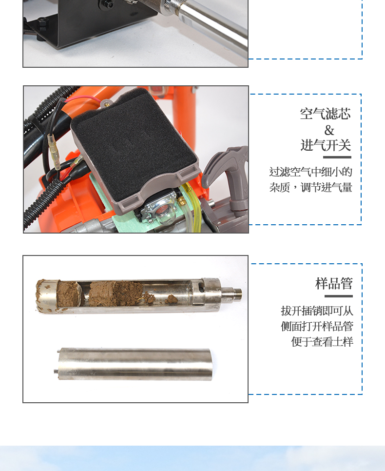4、筒型鉆頭獨(dú)特可拆卸裁口設(shè)計,取樣容易。