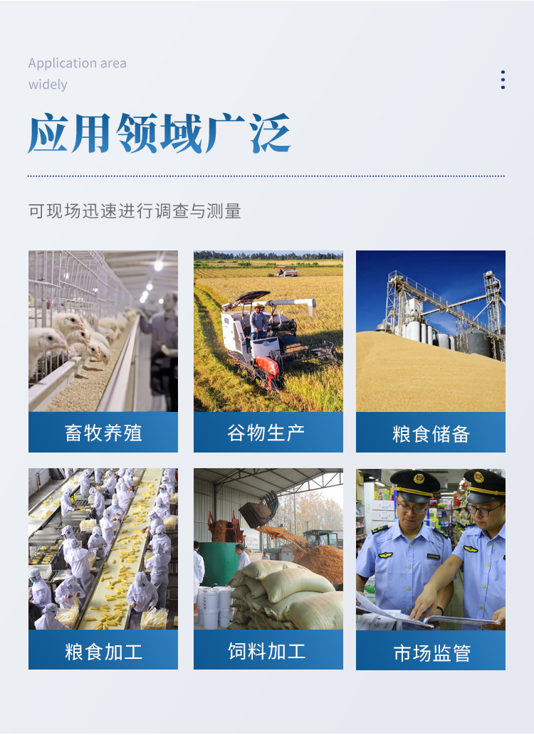 YP-L03型真菌毒素快速檢測儀采用熒光定量快速檢測原理,主要檢測糧油谷物飼料中真菌毒素含量,包括黃曲霉毒素、玉米赤霉烯酮、嘔吐毒素、伏馬毒素、赭曲霉毒素、T-2毒素等等,檢測樣品涵蓋糧食谷物(大米、玉米、小麥、大麥、高粱等)及其制品、飼料及其原料、食用油脂、牛奶及其制品等;樣品前處理簡單,整個檢測過程檢測12min,產(chǎn)品適用于地方糧庫、谷物生產(chǎn)企業(yè)、飼料廠、各類畜牧養(yǎng)殖企業(yè)、面粉廠、食品加工廠、第三方檢測機構(gòu)及各級政府監(jiān)管部門。