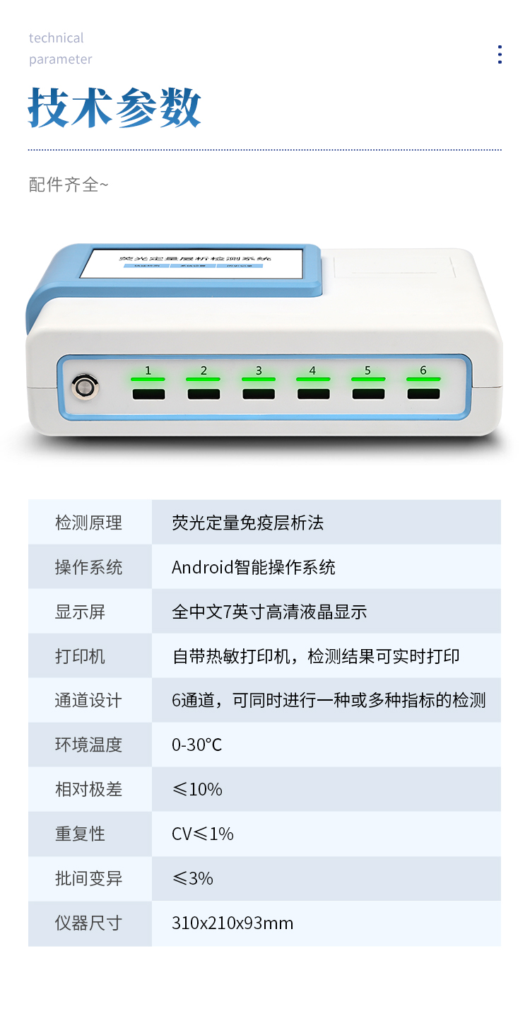 4、檢測原理:熒光定量免疫層析法;