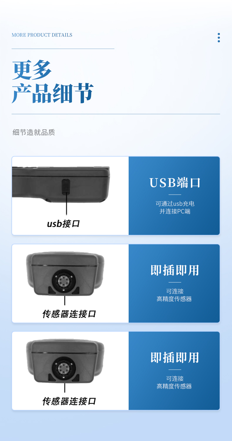 帶背光顯示和操作鍵盤,功能全面操作簡單,界面簡潔,濁度光纖傳感器自動識別,測量數據的讀取、存儲,傳感器校準等功能,并且可以 USB 數據導出,實現更多高端功能。追求高性價比是我們一貫的追求。