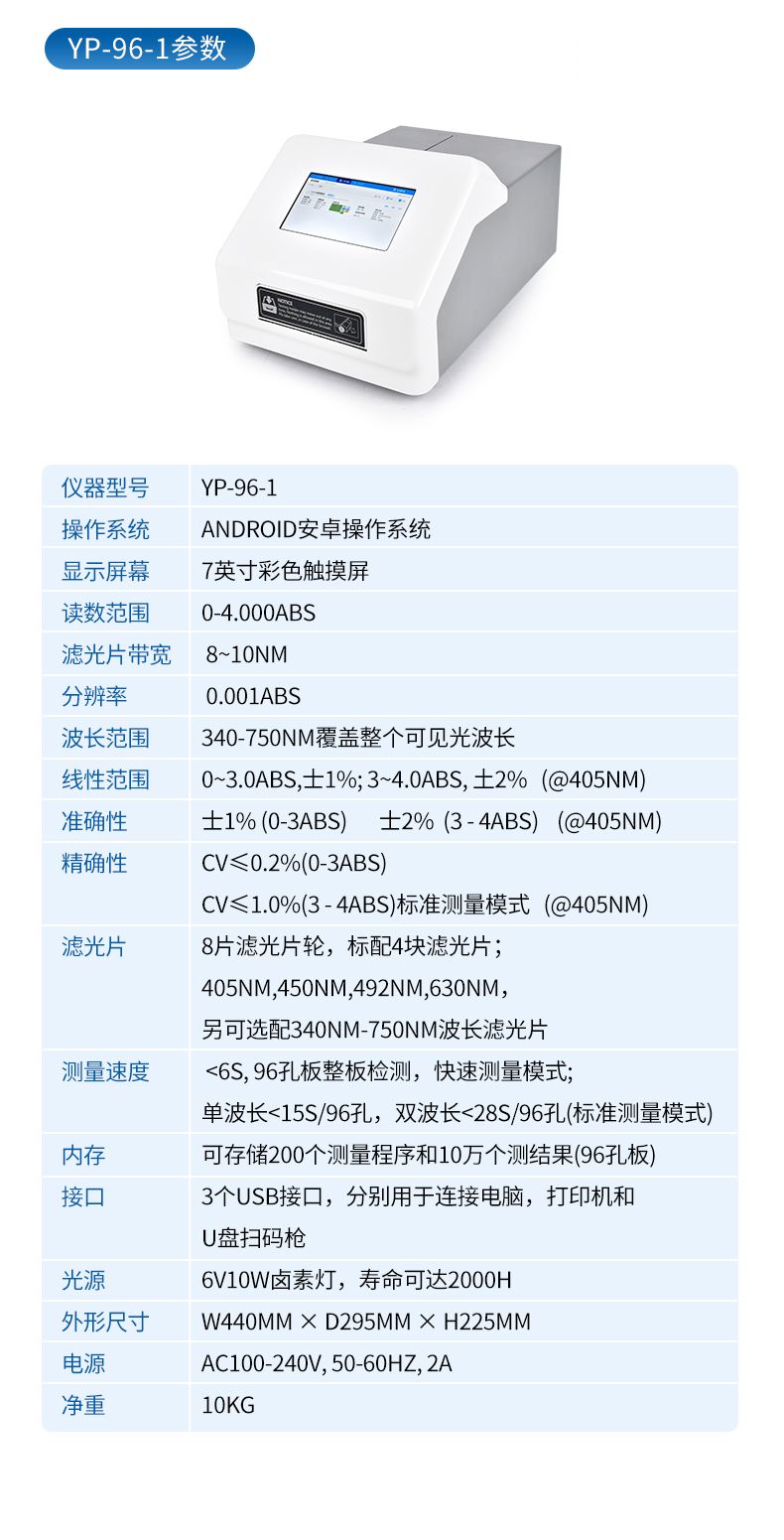 *讀板速度:?jiǎn)尾ㄩL(zhǎng)≤3秒/96孔,雙波長(zhǎng)≤6秒/96孔