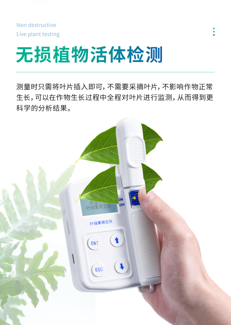 1.快速無損植物活體檢測,測量時只需將葉片插入即可,不需要采摘葉片,不影響作物正常生長,可以在作物生長過程中全程對葉片進行監(jiān)測,從而得到更科學的分析結(jié)果
