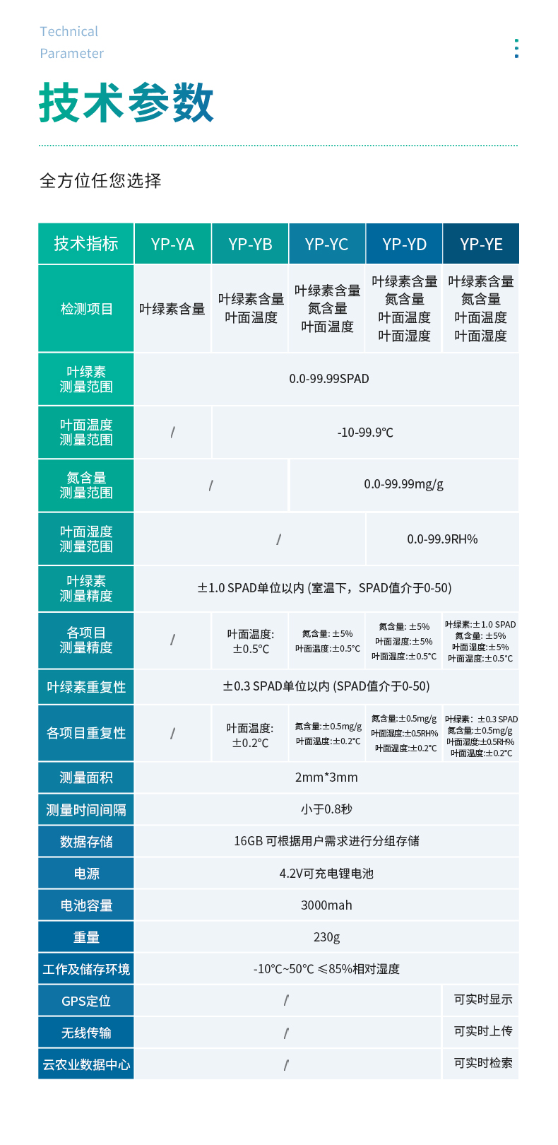 氮含量:±0.5mg/g 葉面溫度:±0.2℃