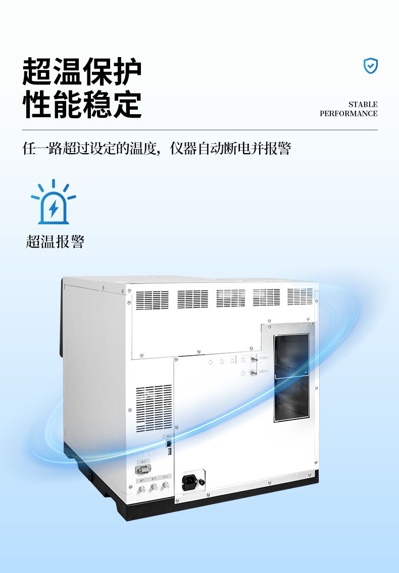 ●  載氣具有壓力保護功能,氣體壓力低 0.4mpa 時儀器自動切斷電源有效保護色譜柱使用安全。