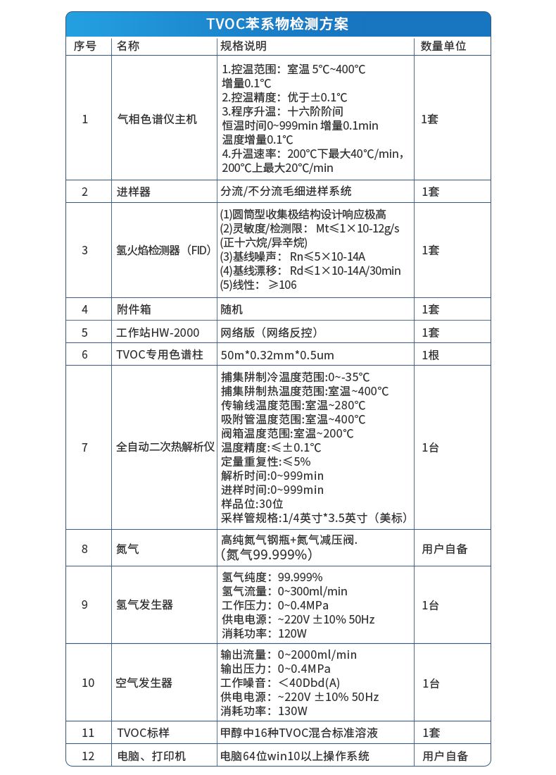 智能氣相色譜儀配置明細