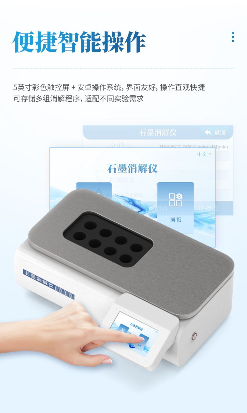 石墨消解儀作為高效的實驗室樣品前處理平臺,廣泛適用于環境監測(土壤、污水、固廢中重金屬消解)、食品與農產品檢測(糧食、肉類中微量元素分析)、農業地質(肥料、飼料、巖石成分分析)以及產品質量控制與科研教學等諸多領域,是各類實驗室進行濕法消解與熱浸提的理想工具。