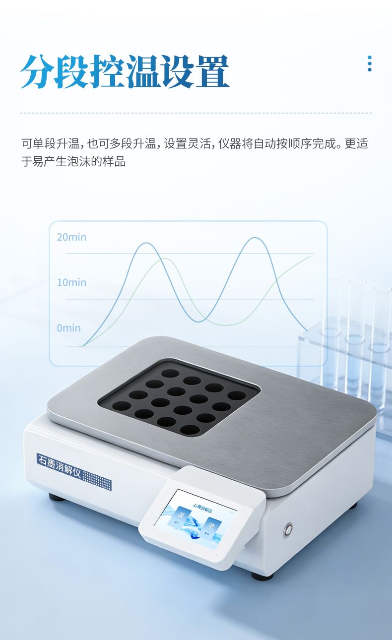 石墨消解儀采用優質高純石墨材質,結合精確的環繞立體加熱技術,確保消解孔間溫差極小,有效保障了批量樣品處理的平行性與結果準確性。智能PID溫控系統支持高精度程序升溫,用戶可靈活設定并存儲多組消解程序,操作簡便,重現性極佳。同時,儀器具備超溫保護、漏電保護等多重安全機制,配合耐腐蝕設計及友好的操作界面,在提升實驗效率的同時,全力守護實驗安全。