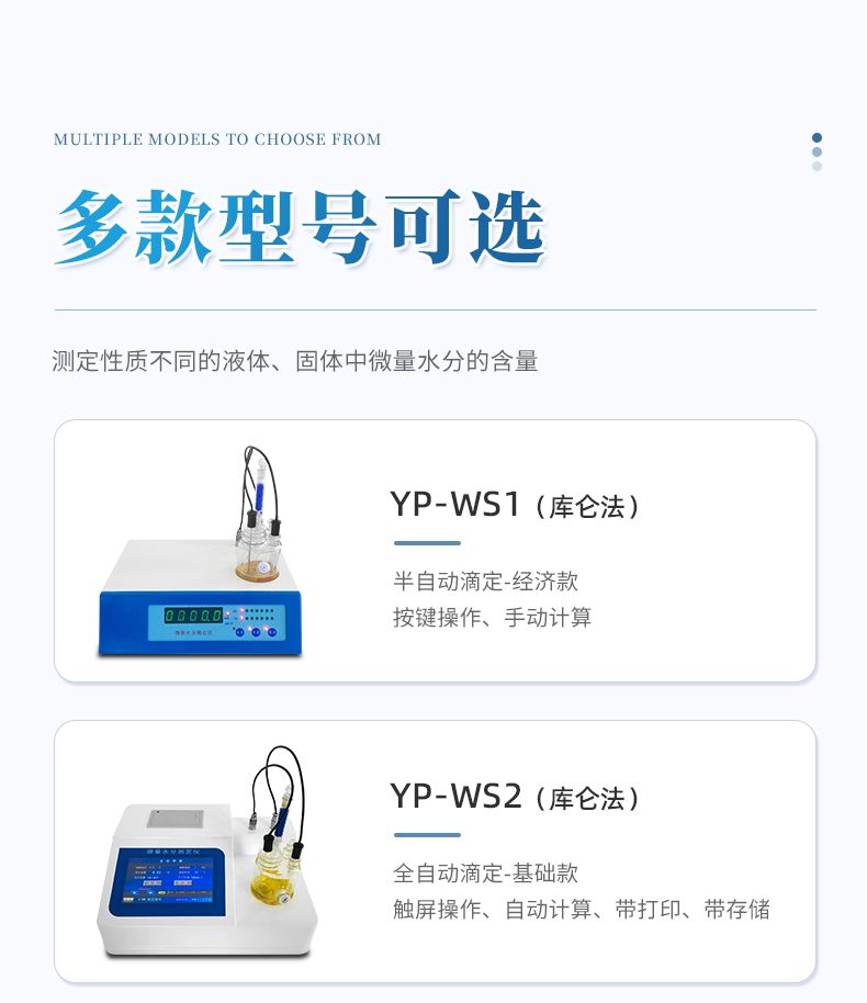 2.儀器具有試驗結果存儲、打印、計算功能;樣品測定過程由儀器自動控制,攪拌、測定60秒左右自動完成,直接顯示測定結果;全密封滴定池瓶,避免試劑與人接觸,也避免環境濕度的影響;儀器中文液晶顯示,并具有自動計算和打印功能,能打印出百分含量、樣品編號、試驗員、實驗日期等內容;儀器準確度為:①水含量小于10微克水時,測量值誤差小于2ug水;②水含量在10微克-1000微克水時,測量誤差≤2ug水;③水含量在1000微克以上時,測量值誤差≤0.2%(不含進樣誤差);