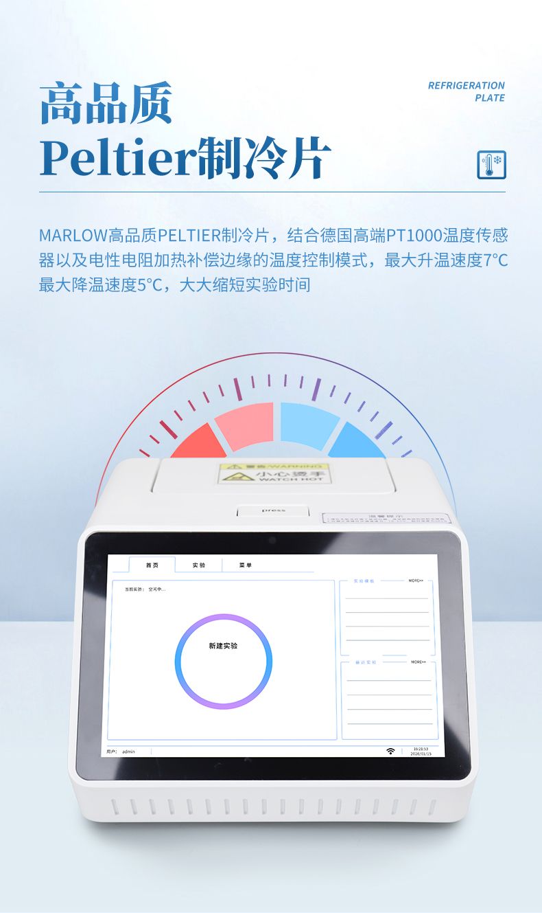 3.Marlow高品質Peltier制冷片,結合德國高端PT1000溫度傳感器以及電性電阻加熱補償邊緣的溫度控制模式,*大升溫速度7℃,*大降溫速度5℃,大大縮短實驗時間。