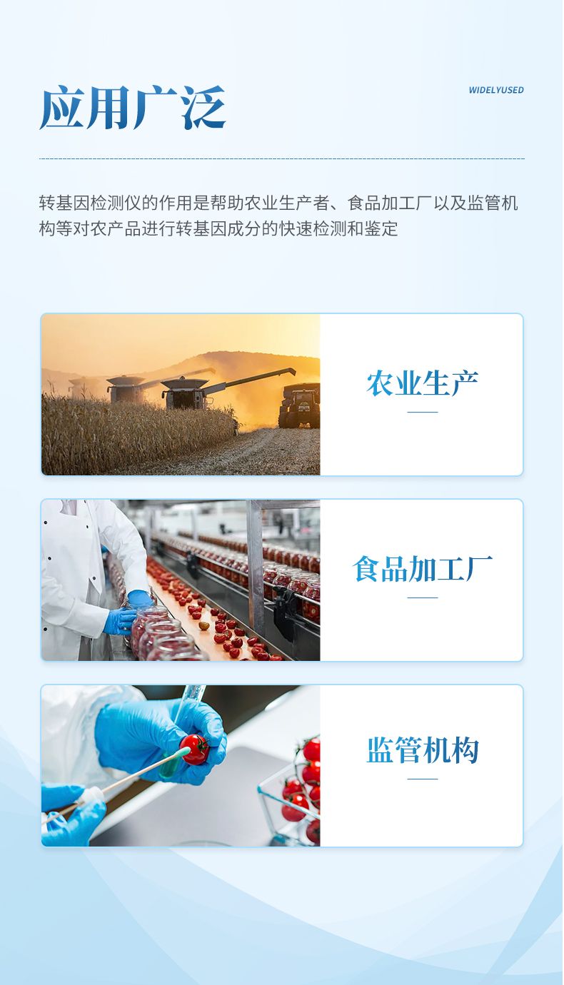 轉(zhuǎn)基因檢測(cè)儀的使用可以幫助農(nóng)產(chǎn)品生產(chǎn)者和相關(guān)部門(mén)確保農(nóng)產(chǎn)品的品質(zhì)和安全性,并確保符合相關(guān)法規(guī)和標(biāo)準(zhǔn)。這對(duì)于消費(fèi)者的食品選擇和信息透明也非常重要。