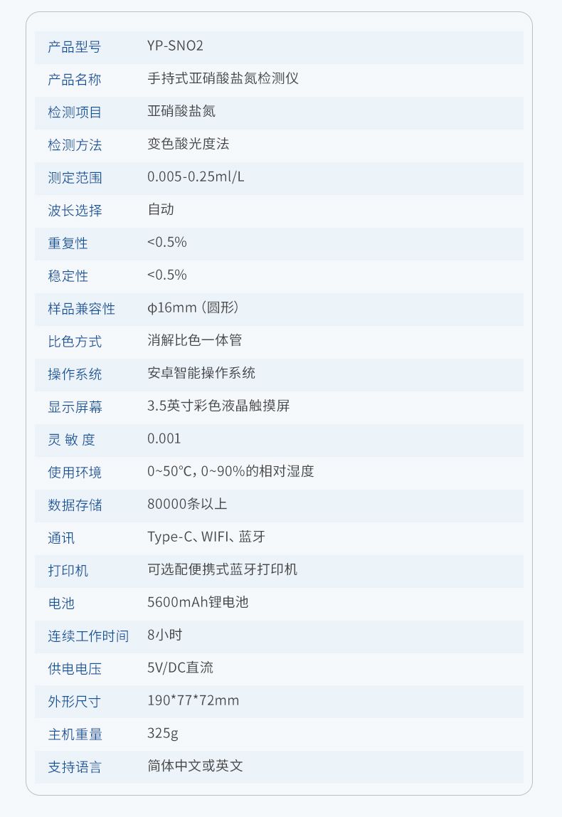 手持式亞硝酸鹽氮檢測儀主要檢測水體中的亞硝酸鹽氮含量;參考方法《變色酸光度法》研發設計制造,儀器配備高清晰度彩色液晶觸摸顯示屏,Android智能操作系統,中文顯示界面,中英文鍵盤,人性化操作,使用更簡單;