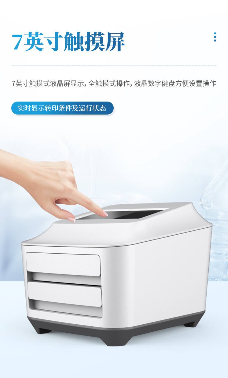 *7寸觸摸式液晶屏顯示,全觸摸式操作,液晶數(shù)字健盤(pán)方便設(shè)置操作,實(shí)時(shí)顯示轉(zhuǎn)印條件及運(yùn)行狀態(tài)。