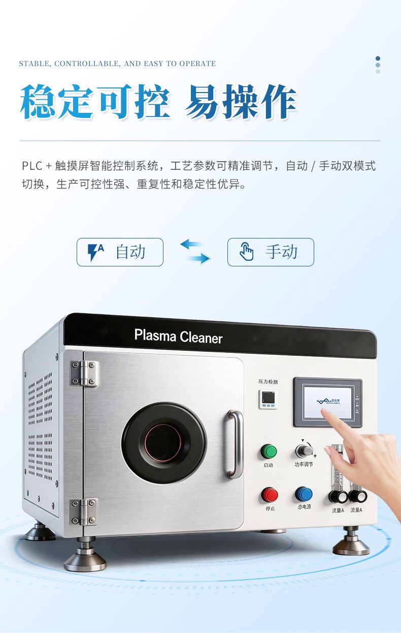 YP-ZK系列等離子清洗機定位于小規模生產及各大院校科學實驗使用,廣泛應用于電 子、太陽能、汽車、紡織、包裝印刷、生物醫療及通用行業,其特點為處理效率高、重復性和穩定性良好,操作方便,工藝參數多樣性,執行多樣化任務,適用于清洗、活化、提高粘結力、附著力及刻蝕等工藝,并可根據客戶不同需求量身定制專業、高效、穩定的解決方案。